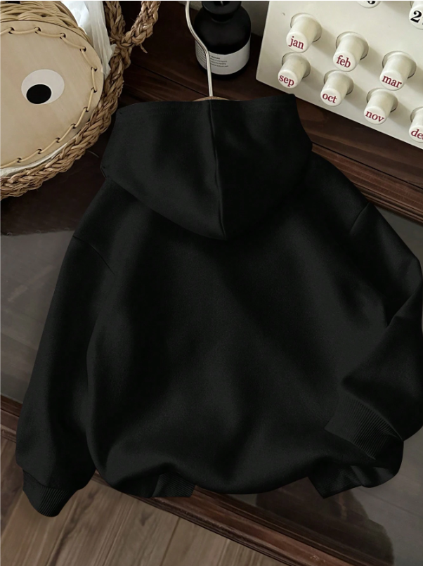 Capucha con cordón ajustable + bolsillo canguro funcional.